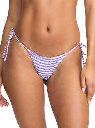 Our bell-shaped bikini bottom brings flirty style with adjustable side ties and delicate shirring details. The skimpy cut and signature metal plate at back create a beach-ready look in partially recycled materials. Featured here in the Purple colorway.